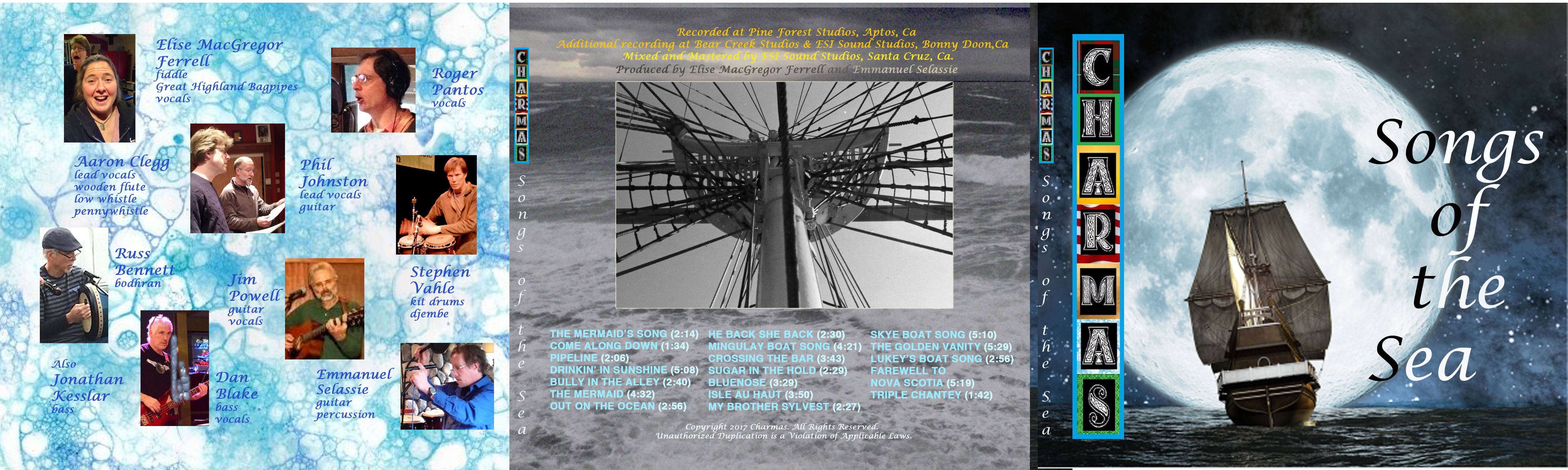 Recording CHARMAS two albums, Songs of the Sea and Stark Raving Celtic, involved participation from many past members and friends of the band, shown here on our CD jackets.